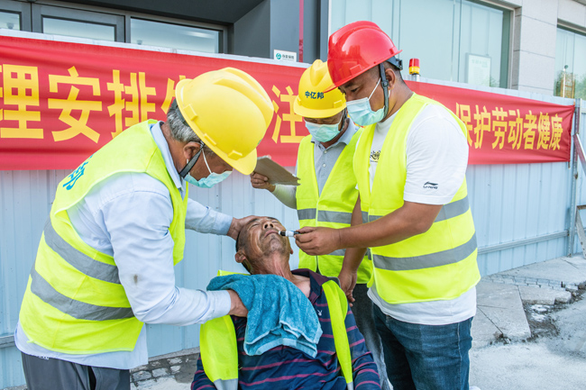 通過此次應(yīng)急演練,現(xiàn)場(chǎng)員工對(duì)高溫中暑的自救、互救方法有了更深的認(rèn)識(shí),加強(qiáng)了現(xiàn)場(chǎng)作業(yè)人員應(yīng)對(duì)突發(fā)情況的反應(yīng)能力、提高了應(yīng)急救援技能,增強(qiáng)了戶外工人安全防范意識(shí)。借助此次應(yīng)急演練機(jī)會(huì),結(jié)合高溫天氣以及實(shí)際情況,各項(xiàng)目部對(duì)防暑降溫所需物資進(jìn)行了全面梳理,合理儲(chǔ)備藿香正氣水、人丹、5%碳酸氫鈉等應(yīng)急物資,為安全生產(chǎn)和工人的健康提供了有力保障。